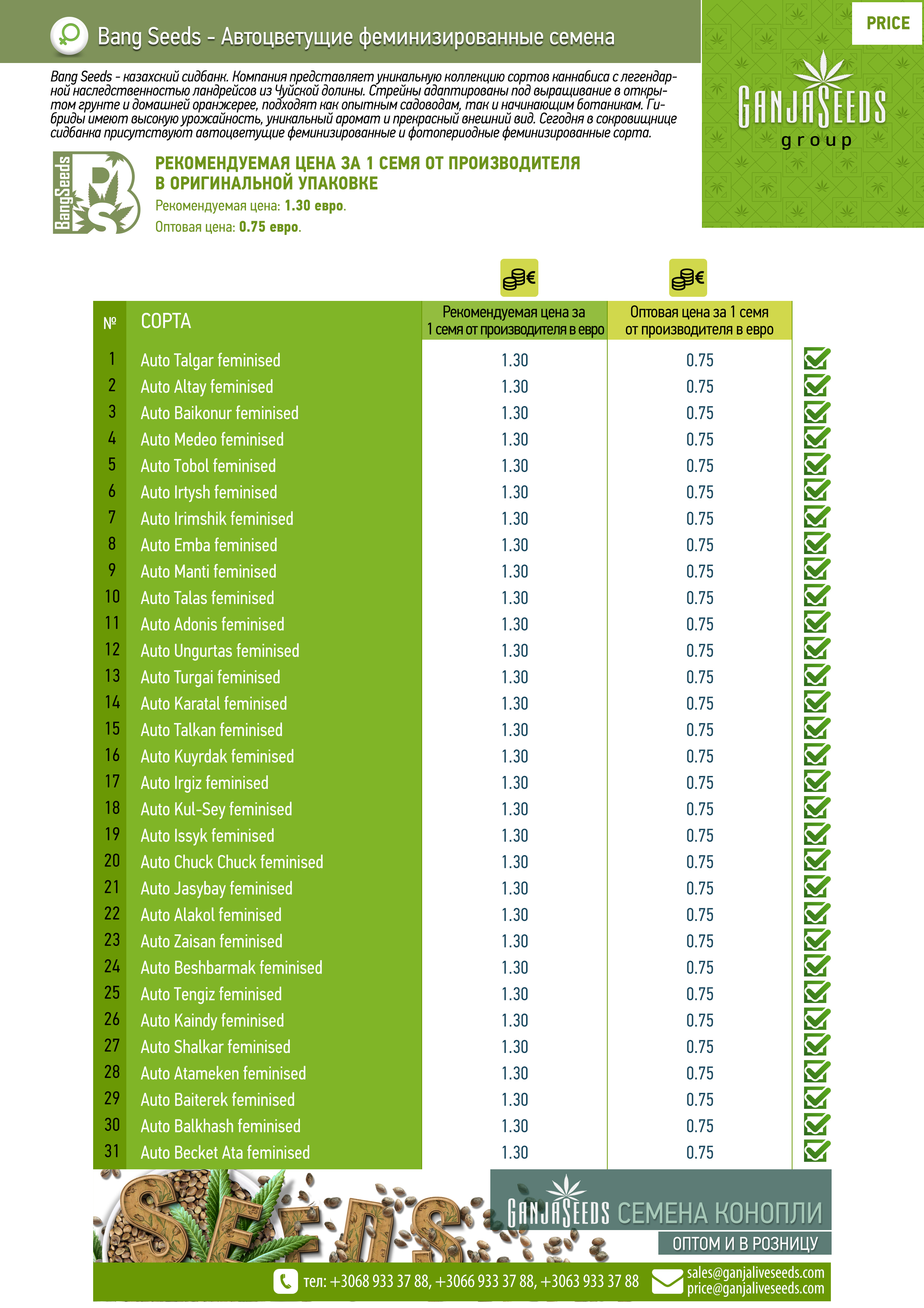 Оптовый прайс семян конопли BangSeeds